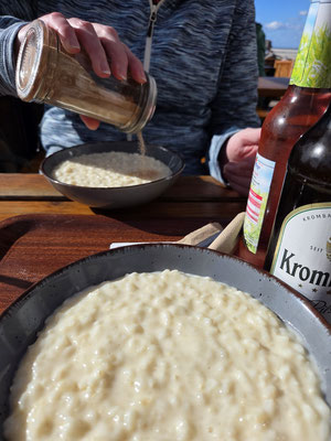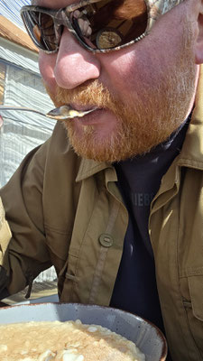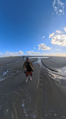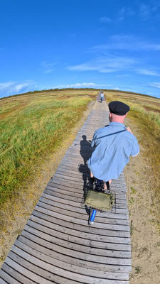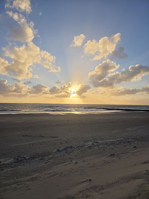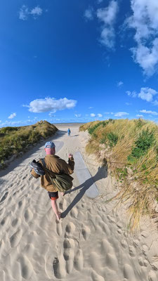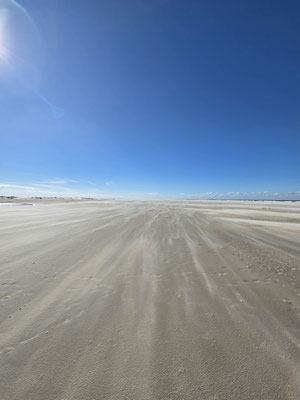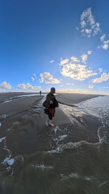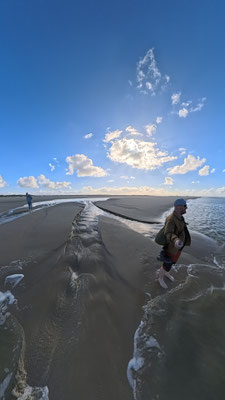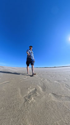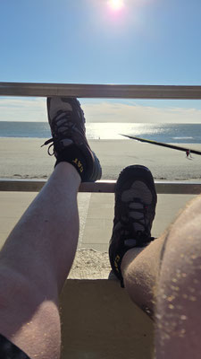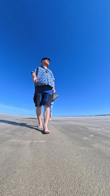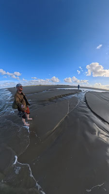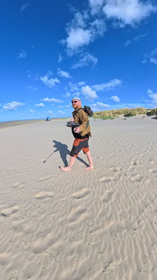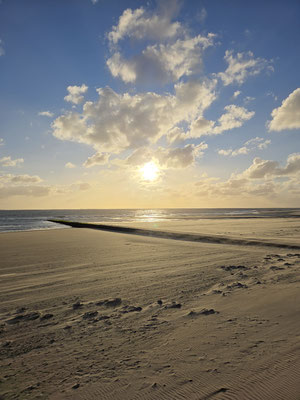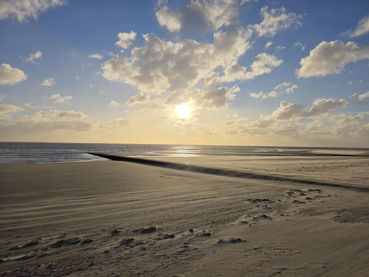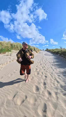 Der sechste Tag begann spät, die Insel wirkte ungewohnt still. Bei leichtem Wind unternahm ich einen langen Strandspaziergang von rund 15 Kilometern bis zum Dünenbudje. Am Abend gab es eine üppige Admiral-Platte im Fischlokal, bevor der Tag gemütlich mit Bier und Fischfrikadelle auf der Couch ausklang.
