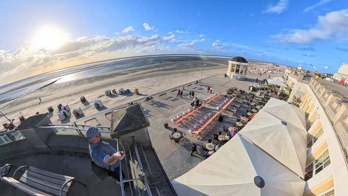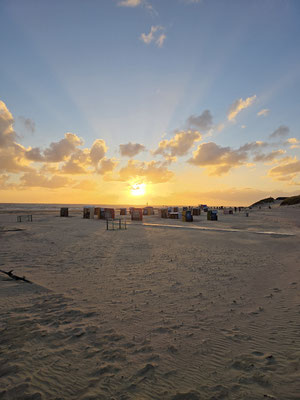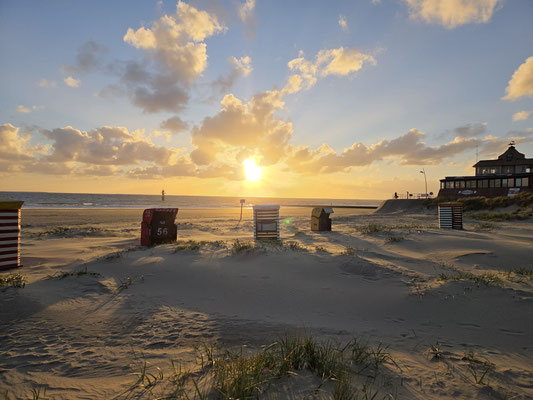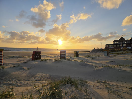 Ein Highlight jeder Borkum-Reise: der Aufstieg auf den Neuen Leuchtturm. Nach 308 Stufen eröffnete sich ein weiter Blick über Insel und Wattenmeer. Am Abend folgte ein farbenprächtiger Sonnenuntergang mit Rosa, Gold und Purpur am Himmel – ein unvergesslicher Moment.