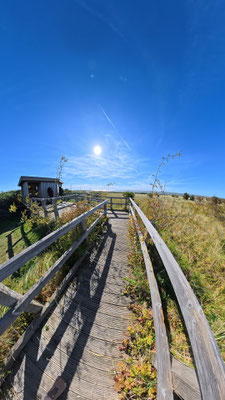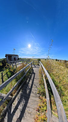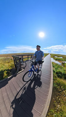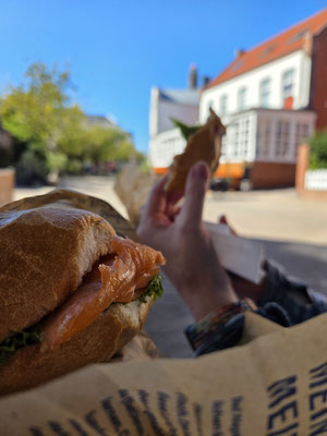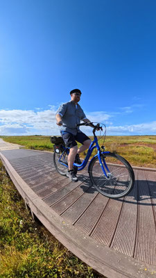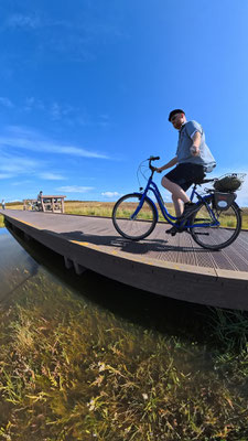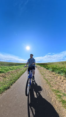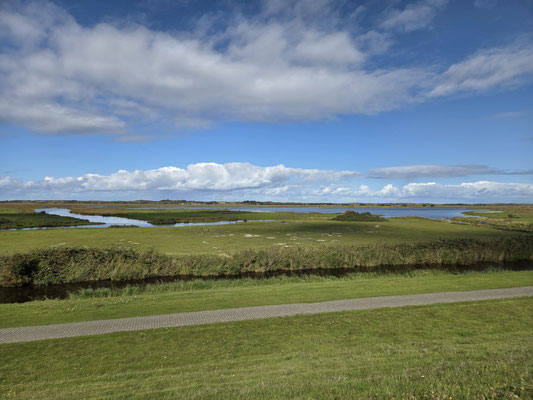 Die größte der Ostfriesischen Inseln ist ein Paradies für Radfahrer. Mein Weg führte vom Südstrand über den Loopdeelenweg und die Ronde Plate bis zum Tüskendörsee, weiter Richtung Ostland und schließlich zum Inselbahnhof. Kulinarische Begleiter: Krabbenbrötchen, Fischfrikadelle, ein Weizenbier und eine Waffel im „Sonnendeck“ – alles bei bestem Spätsommerwetter.