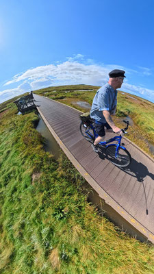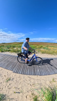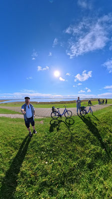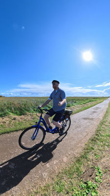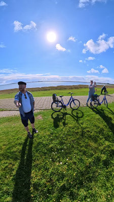 Eine Tour mit Gegenwind führte über den Reededamm, vorbei an Salzwiesen und Watt, direkt zum Hafen. Dort lockte das Feuerschiff „Borkumriff“, ein maritimes Ausflugsziel zum Anfassen. Ein weiterer Höhepunkt: die Kiekhütte am Reededamm mit ihrem einzigartigen Blick über die Landschaft. Zurück ging es mit Rückenwind, vorbei am Schwarzen Deich – ein Ausblick, der sprachlos macht. Stärkung boten Fischbrötchen, Süßes von der Milchbude und ein Sonnenbad an der Promenade.