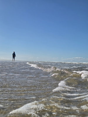 Der Start in die Urlaubswoche begann mit einer Radtour ins Ostland. Am Dünenbudje gab es Milchreis und ein herzliches Wiedersehen mit einem lieben Menschen. Später führte mich ein Spaziergang an die Wasserkante – die Weite des Strandes und die Kraft der Nordsee sind einfach überwältigend. Zurück in der Stadt rundeten frischer Fisch, Eis an der Promenade und die einzigartige Inselatmosphäre den Tag ab.