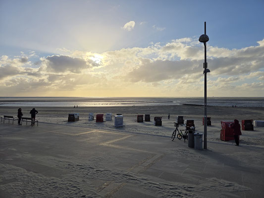 Am letzten Urlaubstag zeigte sich die Sonne nur kurz. Nach einer kleinen Radtour zum Nordstrand ging es ins Heimatmuseum Borkum – ein unscheinbares Gebäude, das sich innen als wahres Schatzkästchen entpuppte: Jahrhunderte an Geschichte, Seefahrt und Tradition. Danach ein letzter Spaziergang durch die Ortsmitte, wo neue Gäste ankamen und andere abreisten. Für uns hieß es: letzter Abend auf der Insel, mit Wehmut im Herzen, aber dem festen Versprechen: Wir kommen wieder – und diesmal nicht erst nach sechs Jahren.